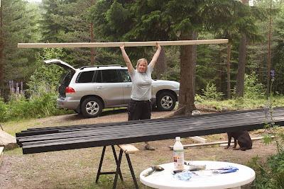Förra veckan passade vi på att sova över, jag vågar inte riktigt sova själv därute..... Så jag fick vackert vänta på att Nicklas skulle få semester! Det är så mysigt när mörkret faller, man sitter inne med brasa och tända ljus och kikar ut i mörkret. Lyssnar på skogens alla ljud, fåglar som slår i vattnet och säkert massa djur som rör sig, både nära och en bit bort....