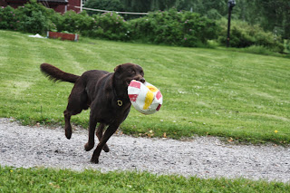 Man fick fina vita tofflor! Spajk såg som sin uppgift att bära omkring på dom... han har faktiskt lyckats få in alla fyra i munnen alldelles själv!?