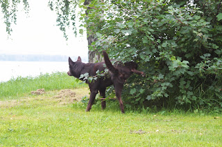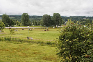 Tyvärr var det regn och totalt igenmulet, så vår planerade solning ute på gräsmattan fick bytas mot lite turistande... Vi tänkte åka till Mårbacka, men det verkligen hällregnade och våra regnkläder var redan blöta efter hundpromenad... men vi såg iaf Mårbacka från bilen :)