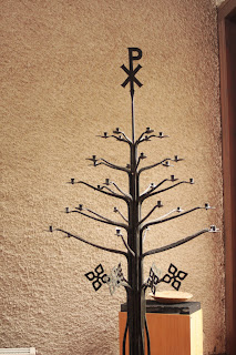 Den vackra ljusbäraren, tyvärr fanns det inga ljus att tända, men jag har fina minnesbilder av ljusbäraren fylld med ljus! Nu tror jag inte det brinner några ljus alls i ljusbäraren.... Undra vad som händer med den när hela stället säljs??? Hoppas den hamnar någonstans där den får tjäna sitt syfte igen.....