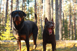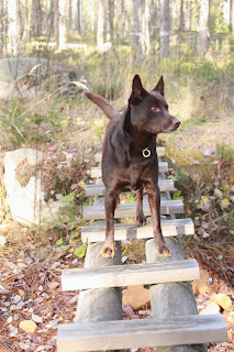 Jag hann ta lite bilder på hundarna under lunchpromenaden, stridsparshinderbanan är kul balansträning!