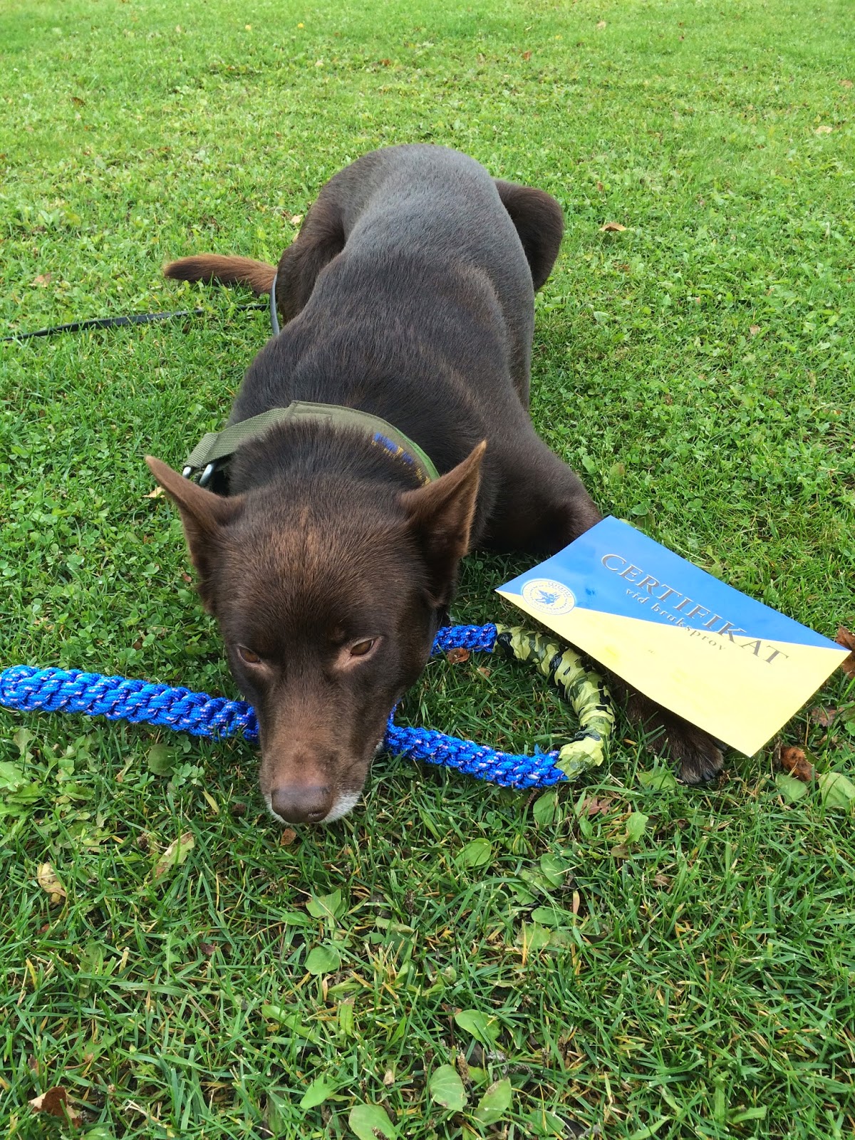 Dagens sista bana passade oss som handen i handsken, gick att köra hunden på vänster sida nästan hela vägen och bara en svårighet då hjärnan på ett ställe ville fortsätta genom en lång tunnel, men banan i själva verket gick åt höger, å mycket riktigt, vad händer???? Jo, Spajk har varit såååååå himla duktig och så skickar JAG in honom i tunneln?? Så kan det gå.... men jäkla skit! För det var verkligen en bana som passade oss!