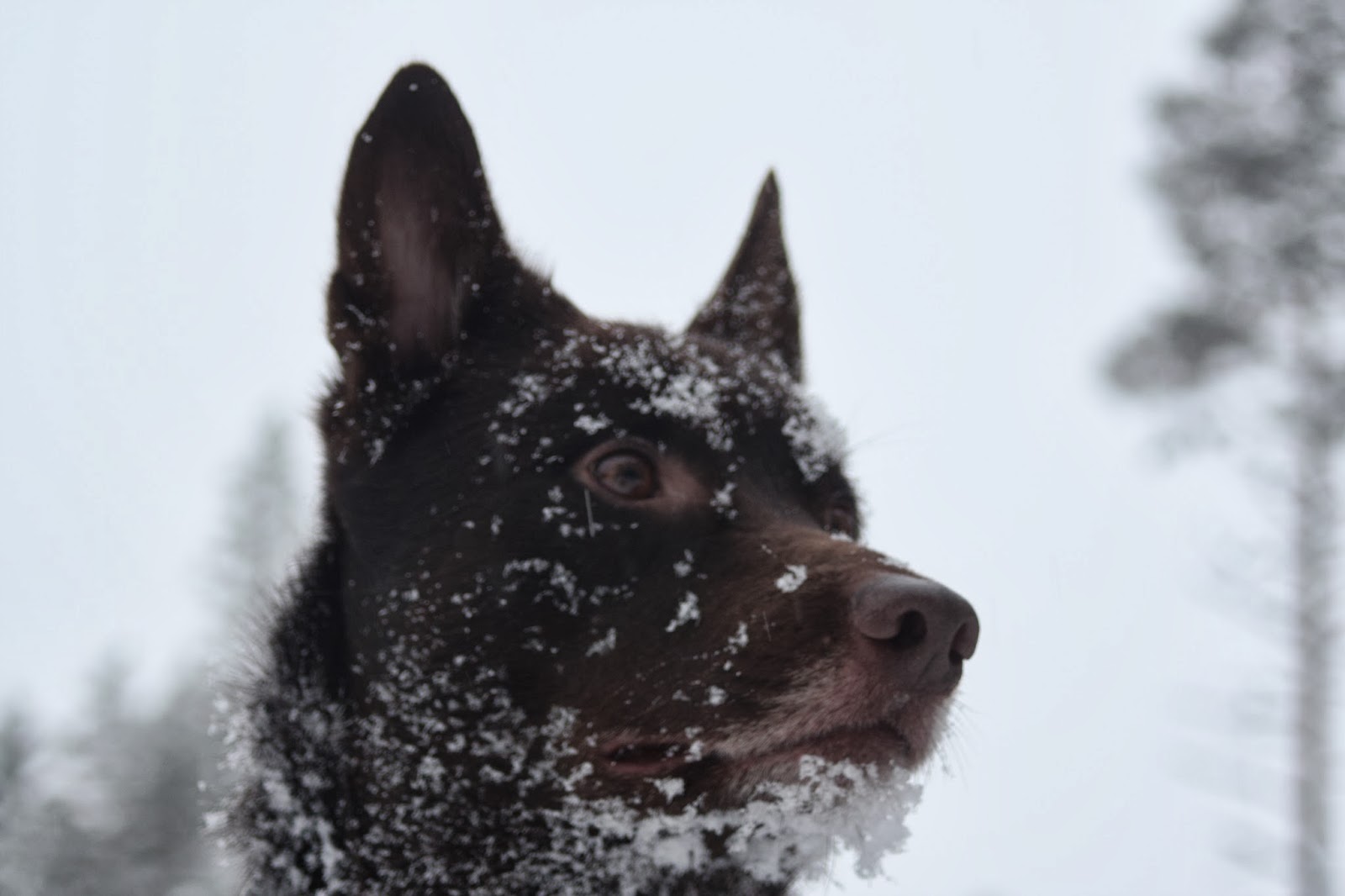 Innan snön kom körde vi några pass sök, Spajken går från klarhet till klarhet och vi har nu prövat lite tomslag, han köpte det på direkten, skönt. Det är coolt att se han i skogen, så fri liksom. Han har ju hittills alltid löst problem genom att springa, han stannar inte och funderar utan han springer, så söket passar honom nog ganska bra.