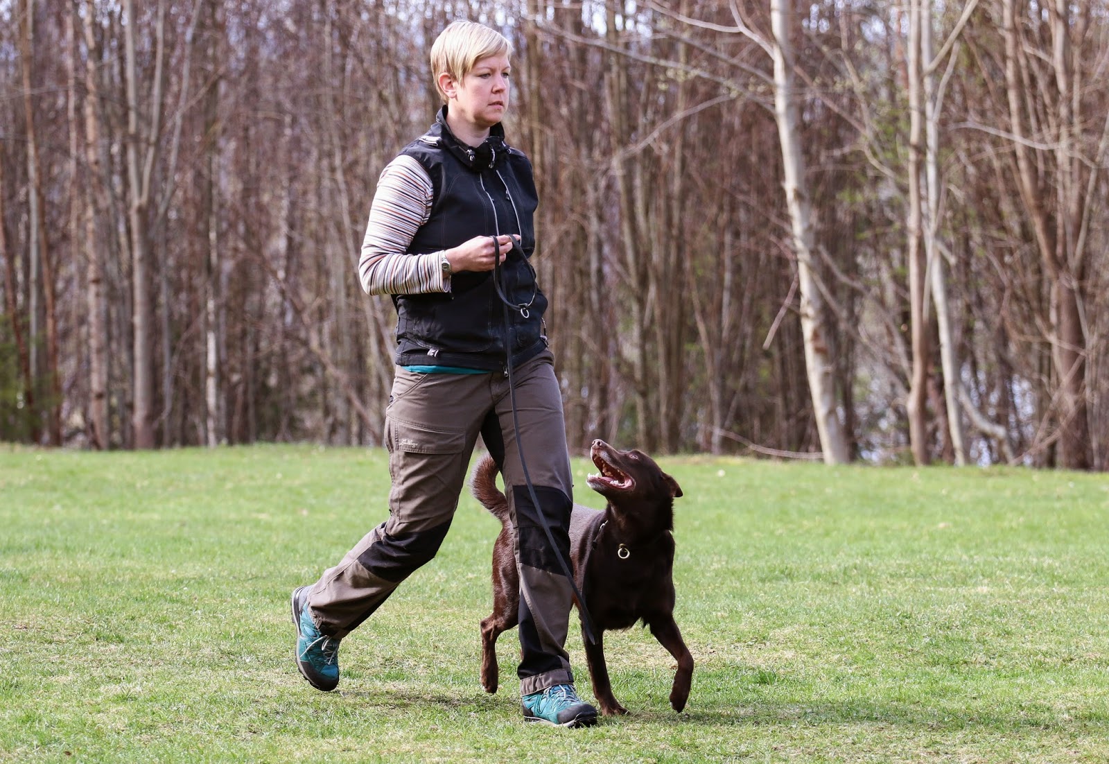 Fina Spajk spårar på och rätt som det är liggmarkerar han vid en omkullfallen trädstam, och mycket riktigt så ligger det ett föremål där, ett magasin av metall! Fina duktiga Spajk! Vi spårar vidare och vi gör halt då och då för att rapportera riktningsförändringar, fina Spajk löser dessa halter på ett bra sätt trots att vi aldrig tränat på det!